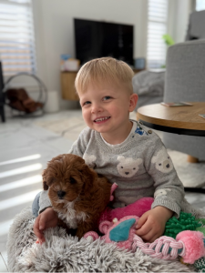 Tommy turned 3 on Sept 1 and the fun with this little guy just continues. He loves sharing things, jumping on anything and everything, running very fast (look out Oma!), reading and playing with cars and trucks. Tommy also has a new little sister (the furry kind) a Cavoodle named Chloe who is just adorable. They are having a lot of fun together. Some latest pics.
